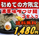【送料無料】【お試し価格!25%OFF】初めての方限定!濃厚味噌つけ麺 3食入*北海道・沖縄・その他一部離島は別途送料650円を頂戴します。*お一人様6個迄ご購入いただけます。